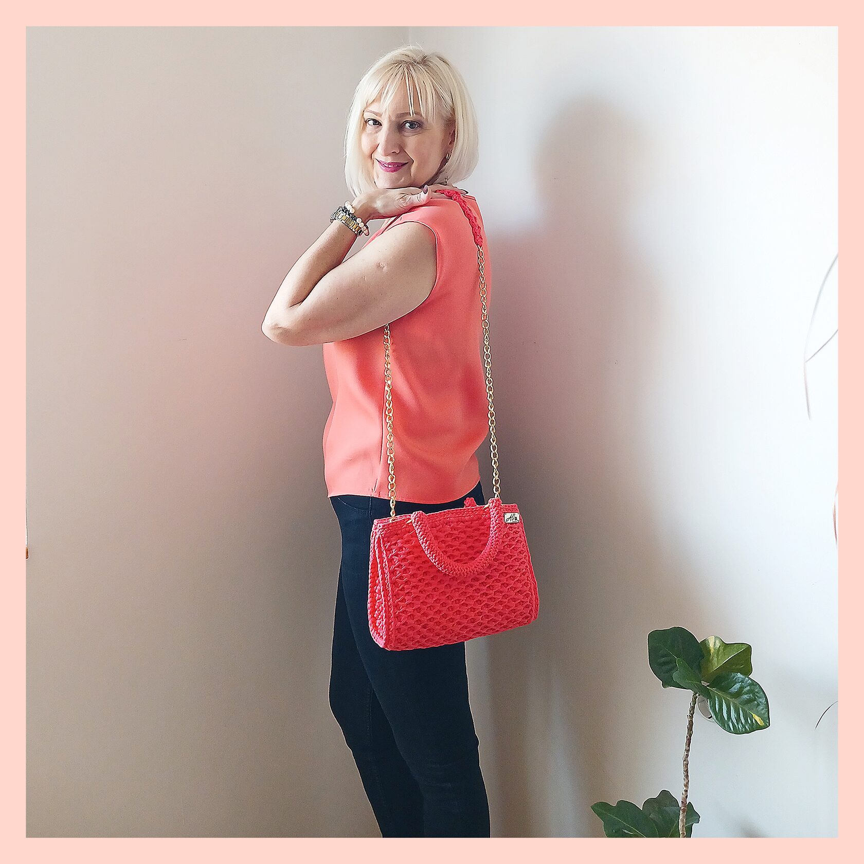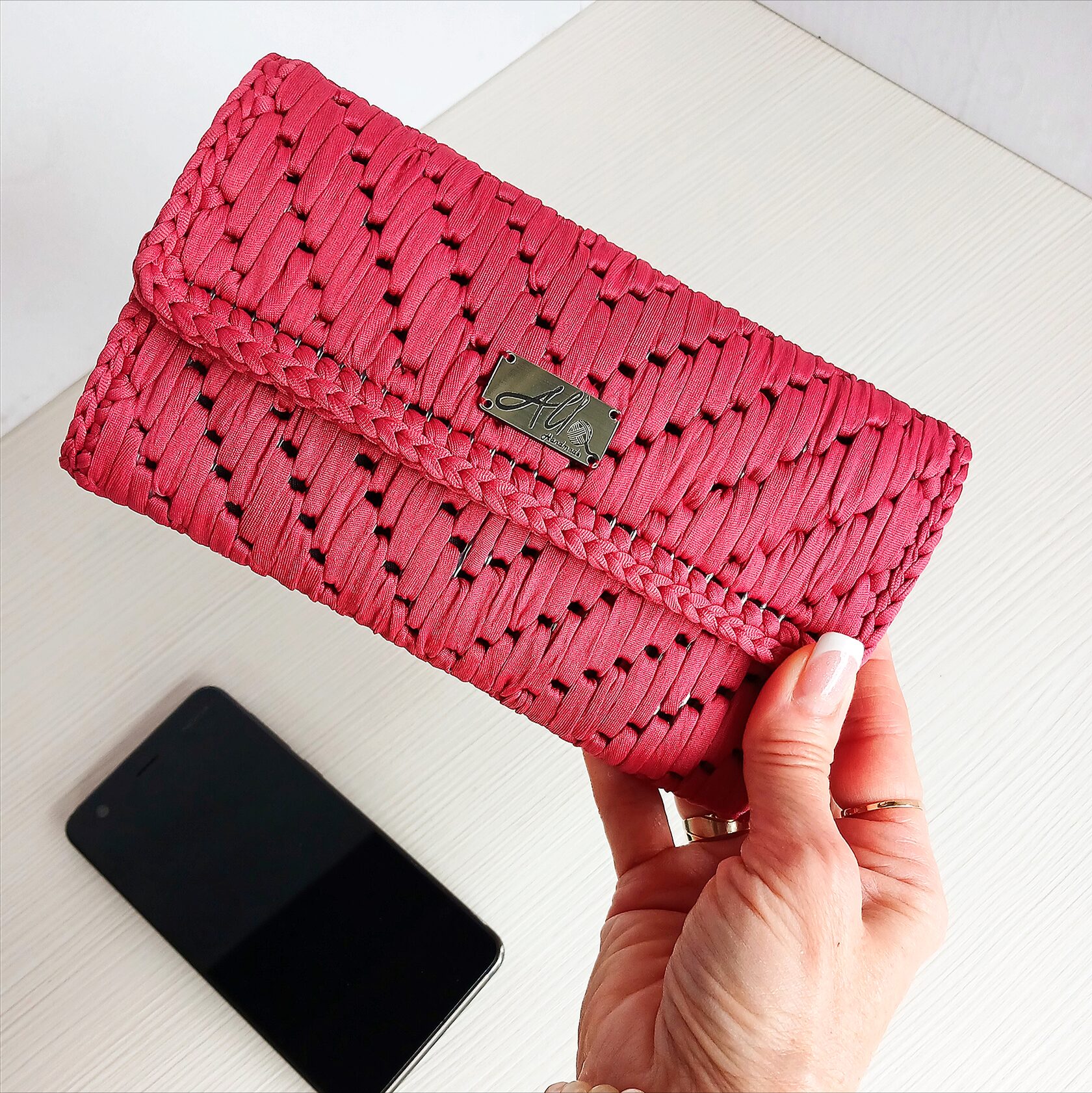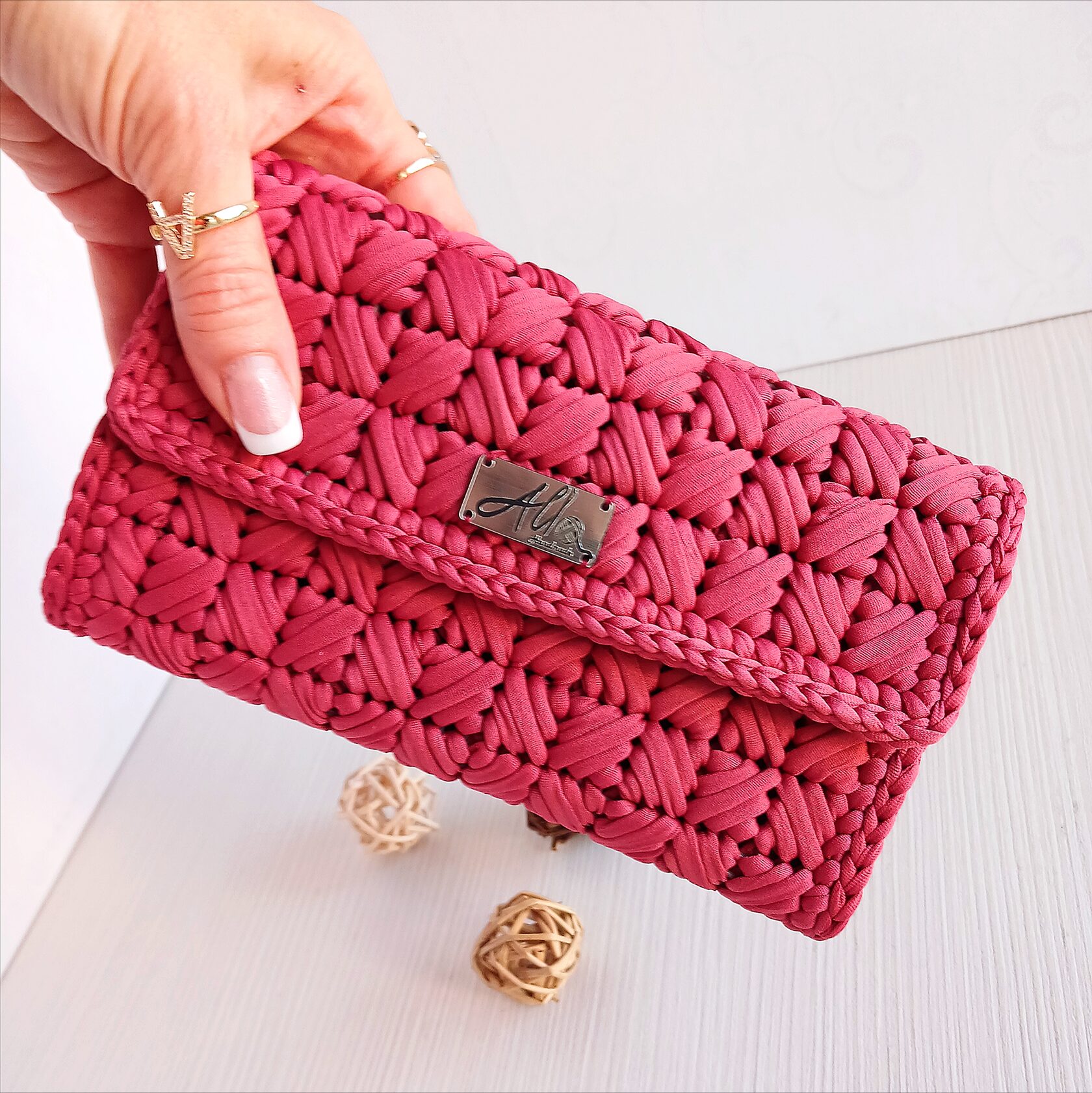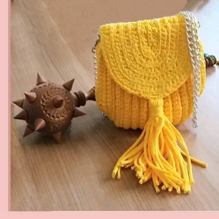 Napravljena od pamučne T-shirt trake ili makrame konca.